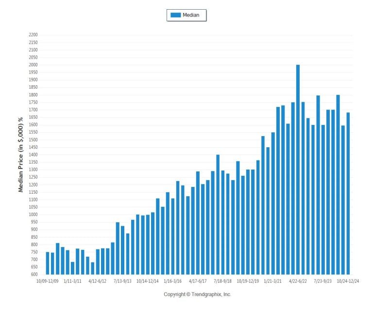 Over the past 15 years, Marin County’s real estate market has consistently demonstrated the principles of supply and demand—when inventory decreases, prices rise. In 2019, inventory was building, but the COVID-19 pandemic triggered a surge in demand, pushing home prices to record highs. While there was a slight market correction in 2022-2023, persistently low inventory continues to sustain strong pricing. A balanced market? That will likely happen when more homes become available, reducing buyer competition.